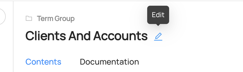 In order to edit a Term or Term Group, you first need to go the page of the Term or Term group you want to edit. Then simply click the edit icon right next to the name to open up an inline editor. Change the text and it will save when you click outside or hit Enter.